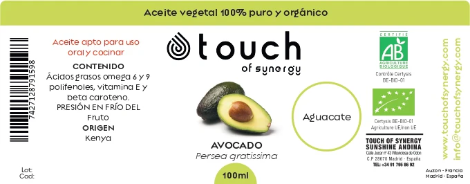 O Óleo Vegetal de Abacate Touch of Synergy, é a escolha ideal para cuidados de beleza e terapêuticos. Rico em vitaminas A, B1, B2, C e ácido oleico, restaura e nutre instantaneamente a pele. Para os cabelos, recupera as cutículas dos fios, promovendo brilho e vitalidade. Ideal para massagens e procedimentos estéticos, por sua alta absorção e compatibilidade com a pele. Pode ser usado também para cozinhar.