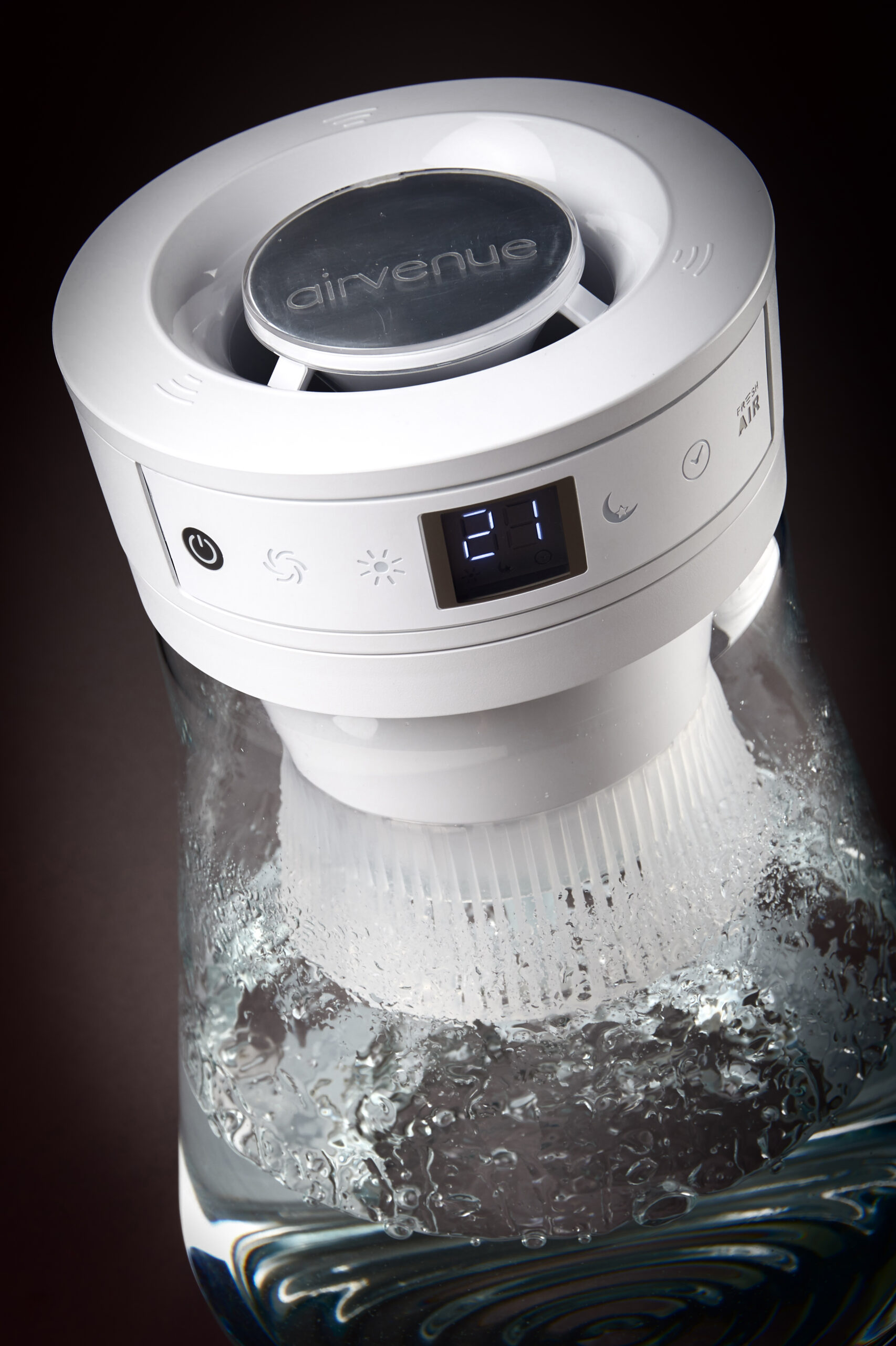 O Airvenue não é só eficiente, é uma obra de arte. Seu design moderno e elegante foi premiado internacionalmente. E o melhor? É incrivelmente fácil de usar. Basta adicionar água, escolher suas configurações preferidas e deixar o Airvenue fazer a mágica.