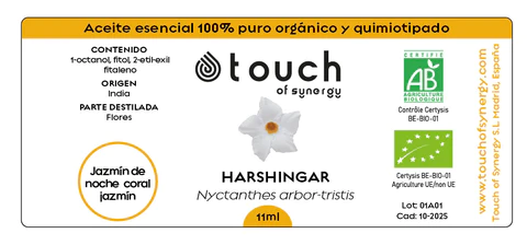 O Óleo Essencial de Jasmim da Noite Touch of Synergy é extraído das delicadas flores do Nyctanthes arbor-tristis, conhecido como jasmim que floresce à noite, jasmim coral ou Parijat. Símbolo de beleza e tradição na Índia e na Tailândia, suas flores exalam um aroma fresco e floral ao entardecer, trazendo consigo propriedades únicas para o cuidado da pele e o equilíbrio emocional.