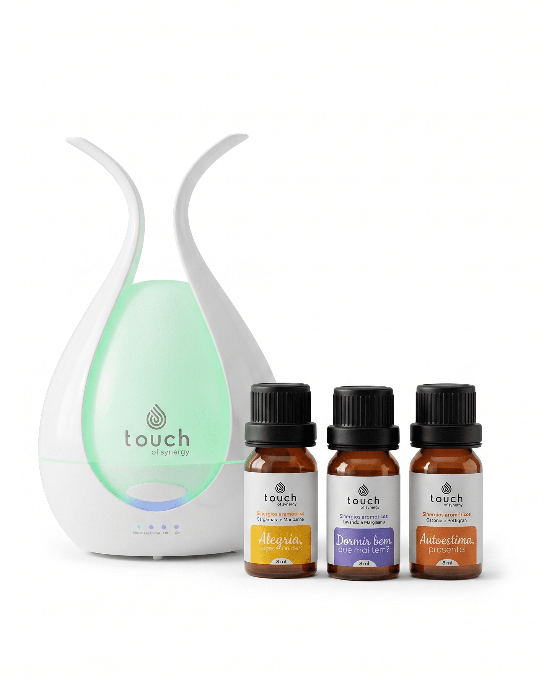 - Kit de Sinergias Touch of Synergy: Conjunto com sinergias exclusivas formuladas para uso no difusor. Inclui:
