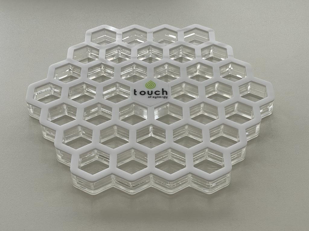 Organize, destaque e valorize sua coleção de Óleos Essenciais com o Porta Óleos em Acrílico Formato Colmeia da Touch of Synergy. Inspirado na harmonia e perfeição das colmeias naturais, este acessório é a escolha ideal para quem deseja praticidade, beleza e sofisticação na exposição dos seus Óleos, seja em casa, no consultório ou em eventos.