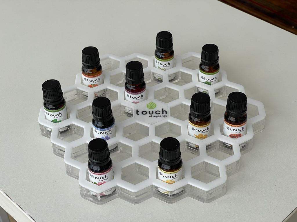 Porta Óleos em Acrílico formato Colmeia Touch of Synergy: A excelência em cada detalhe